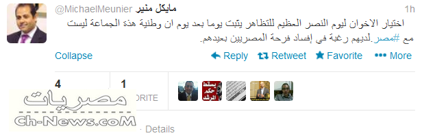 مايكل منير تعليقا على ما فعلة الاخوان اليوم عبر تويتر الان